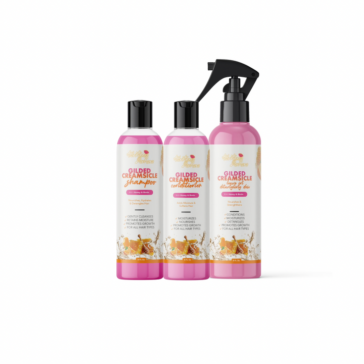 Creamsicle Shampoo, Conditioner, and Detangler with honey and biotin with an irresistible delicious scent!